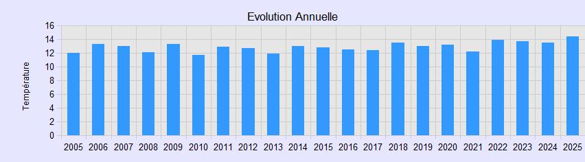 | Moyenne / Mois | Année la plus froide | Année la plus chaude | Année en cours | ||||||||||